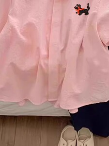 16139独特漂亮粉色刺绣小狗短袖女夏季新款超好看的韩系穿搭上衣
