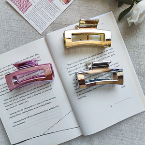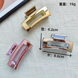 跨境新款电镀方块镂空鲨鱼夹后脑勺发量多盘发女发饰卡子质感抓夹