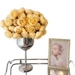 ダイニングテーブルインスタイル屋内高価値リビングルームローズ造花電気メッキ保湿ガラス花瓶造花装飾