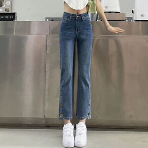 烟管裤2025新款小个子高腰直筒牛仔裤女宽松显瘦显高百搭九分裤子