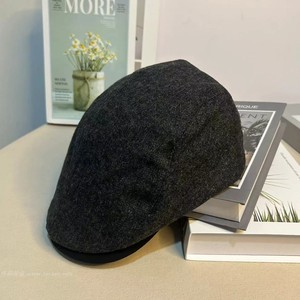 秋冬新款韩版格纹毛呢鸭舌帽男女简约时尚百搭复古休闲纯色前进帽