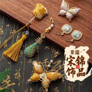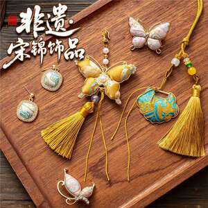 DIY非遗宋锦蝴蝶如意葫芦挂件材料包中式压襟饰配底托双面团建