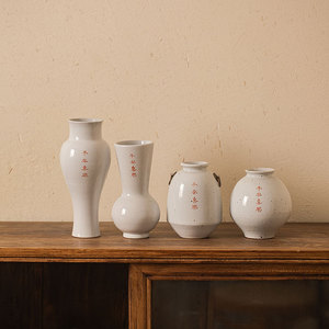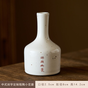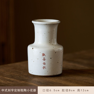 平安喜乐中式手工桌面花瓶装饰摆件私人水养鲜花绿植粗陶花器