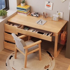 無垢材デスクと本棚一体型家庭用学生ライティングデスク子供の寝室学習オフィスコンピュータデスクバッグインストール