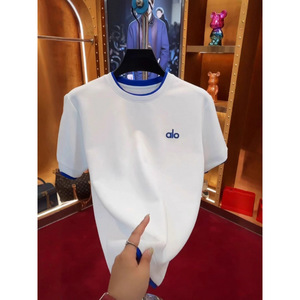 新しいスタイル! alo メンズ韓国カジュアルスリムフィット 2025 夏刺繍ロゴ多用途半袖メンズ T シャツ