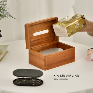 [Sサイズ] ブラックウォールナットティッシュボックス + [インルアンホワイト] アルミニウム合金ティッシュスプリングホルダー
