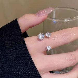 女性用のフラッシュダブルヘッドジルコンオープンリング、軽い高級感、ハイエンド、絶妙なボーンリング、ニッチで多用途な重ね付け人差し指リング