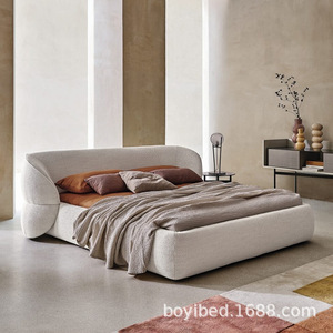 ライトフレンチクリップラップファブリックベッド、高級マスターベッドルーム、雰囲気のあるマスターベッドルーム、ラムウールコットンとリネンのデザイナーバタフライベッド