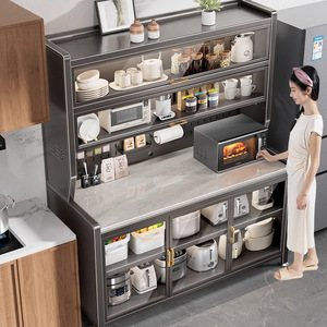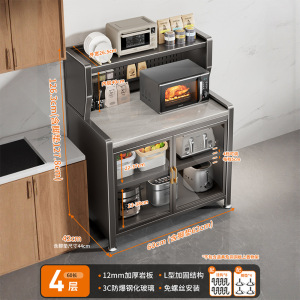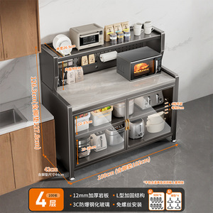 食器棚、多層式家庭用キッチン収納ラック、電子レンジラック、岩板多機能収納ボウルキャビネット