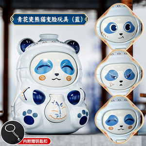 Guochao 青と白の磁器パンダの顔が変わる人形