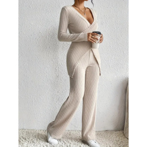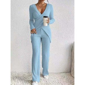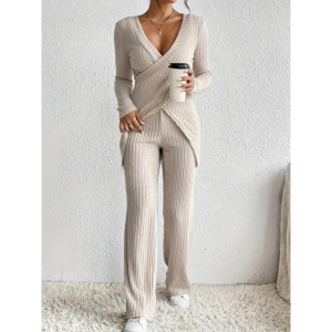 现货欧美跨境爆款亚马逊2025新款修身长袖宽松高腰上衣裤子套装