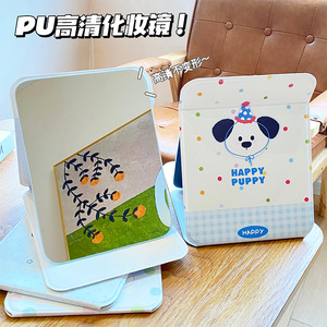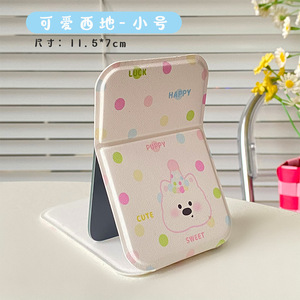 かわいい漫画大型化粧鏡女性ポータブル小型ミラー学生寮 PU 高精細折りたたみミラー卸売