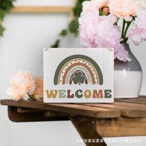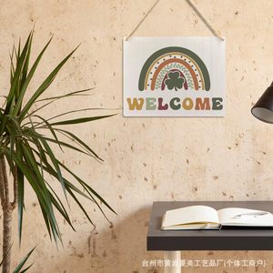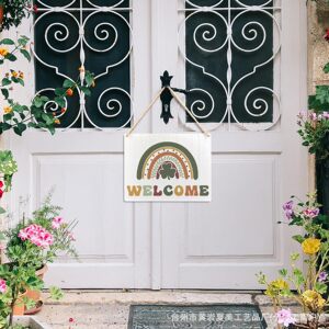ボヘミアンレインボーウェルカム木製吊り看板サイン教室壁ドア木製装飾ウェルカムドアペンダント