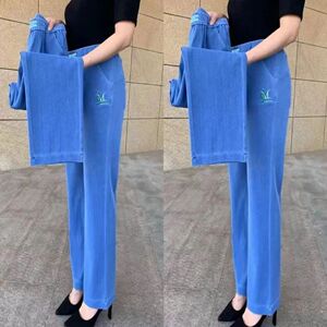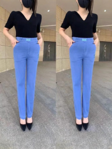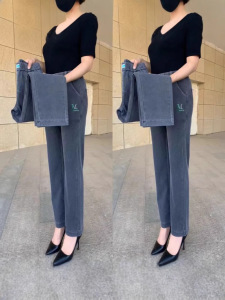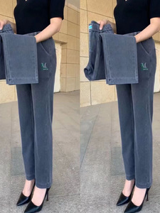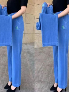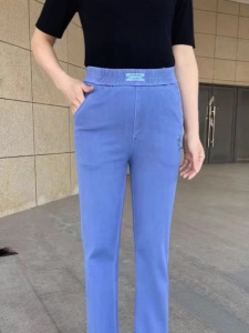 休闲气质春夏裤子新款高腰弹力显瘦百搭冰丝牛仔松紧腰直筒长裤女