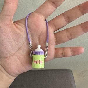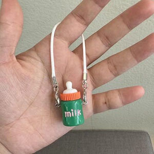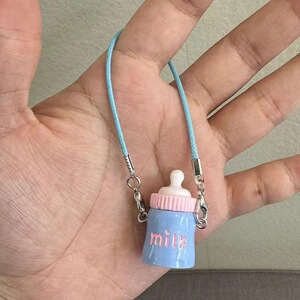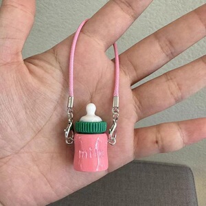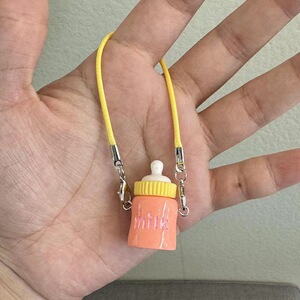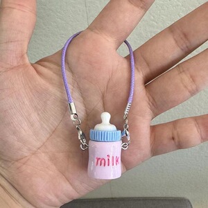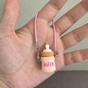 跨境可爱立体卡通挂绳奶瓶 树脂创意马卡龙娃娃饰品配件钥匙扣挂