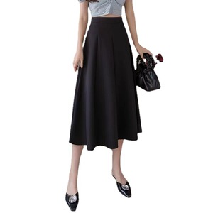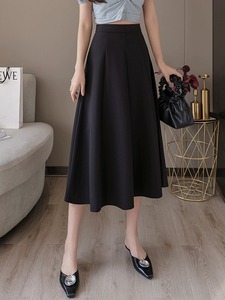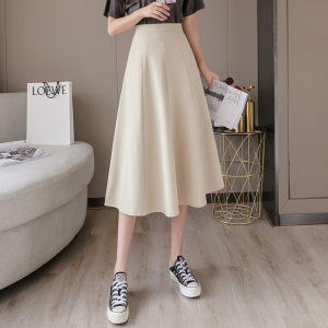 杏色高腰伞裙半身裙女夏季中长款高腰小个子a字裙米白色裙子春秋