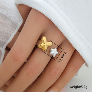 ヨーロッパとアメリカのクロスボーダークリエイティブステンレス鋼鋳造オープンリングセット女性用ウォータードロップトライアングル女性ニッチデザイン