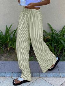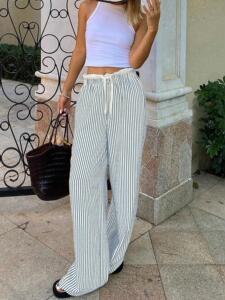 アマゾン貿易ヨーロッパとアメリカのクロスボーダー婦人服ストライプワイドレッグパンツドレープ感のある背の高いズボン春と夏の女性のパンツ