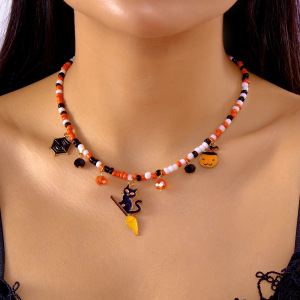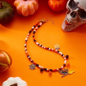 ヨーロッパとアメリカのクロスボーダーホットジュエリーセットハロウィンパンプキンヘッド調節可能なネックレスゴースト魔女合金ネックレス