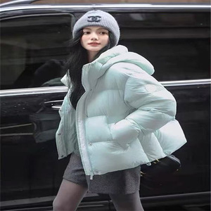 ダウンジャケットレディースハイエンドショート2025ファッショナブルなフード付き厚みのあるデザインアームバンド暖かいカップルパンジャケットトレンディ