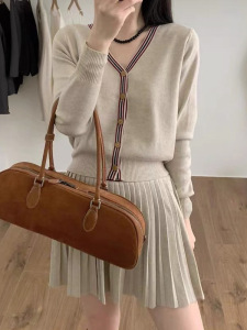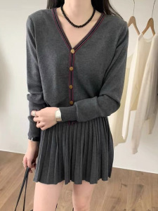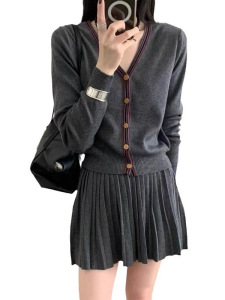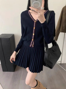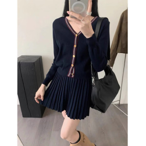 奢缇家女装2025外贸修身风V领针织衫开衫毛衣+半身裙休闲套装女