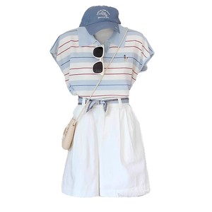 ライトブルーとホワイトの配色【夏のootdコーデ/2025年の新しいホットスタイル/超かっこいいユニークで美しい初夏のトップス/サマードレス/今年人気の婦人服/超人気の年齢軽減/ニッチなデザイン/美しい/小さなシャツ/ドーパミン/シックな韓国スタイル]