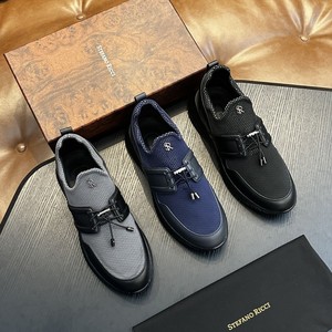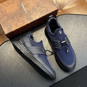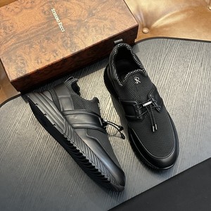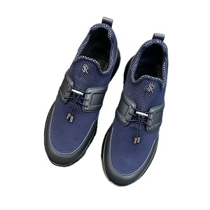 跨境高端科技面料和小牛皮革男士系带运动鞋针织网布透气跑步鞋