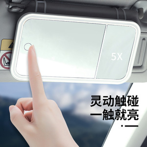 新款汽车遮阳板化妆镜LED灯车载高清镜面灯车载放大镜车内补妆镜
