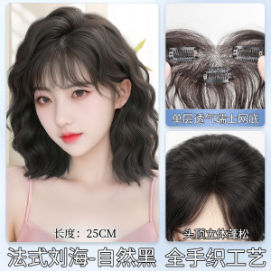 卷发假发片女自然高颅顶蓬松真发波浪卷隐形胎毛刘海轻薄发际线贴