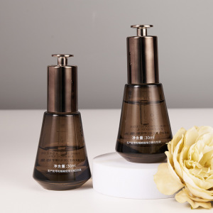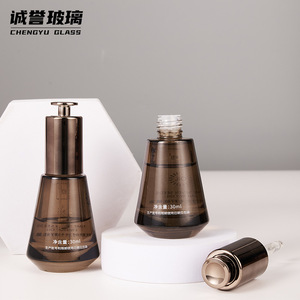 工場でカスタマイズされた 30 ml プレス式円錐形エッセンシャル オイル ドロッパー ボトル、ハイエンドの透明な電気メッキのスキンケア製品のガラス瓶
