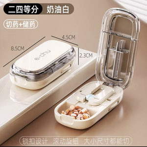 クリームホワイトピルボックス[1/2+1/4ピルカッター]