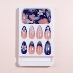 新しい3D接着剤プロセスの青い花びらのウェアラブルネイル24枚、同じスタイルのクロスボーダー貿易ネイル