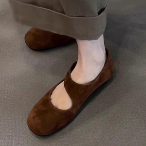 シープスキンバージョン~レトロニッチカラーラウンドトゥフラットバレエシューズ女性用2025新しいメリージェーンシューズ
