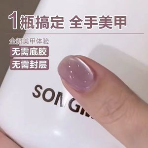 5 イン 1 キャットアイマニキュア接着剤ヌードカラー夏ガラスビーズキャットアイ構築ベース接着剤シーラントマニキュア特別な長持ち