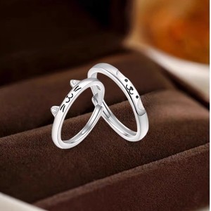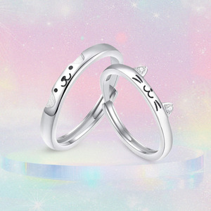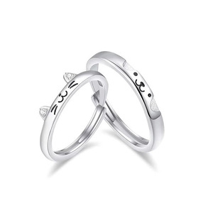 s999 スターリングシルバー猫と犬ステッカーカップルリング女性のための Douyin 同じスタイルの開口部調節可能なニッチリングペアリング卸売