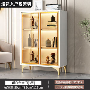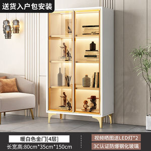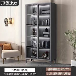 实木书柜带玻璃门客厅一体靠墙置物柜酒柜家用落地书柜展示柜