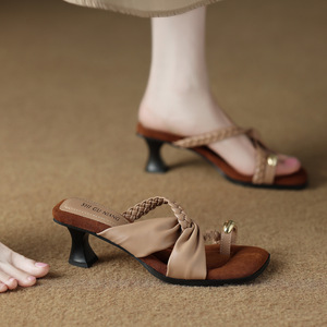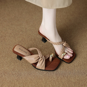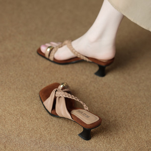 シープスキンバージョン 7633-7 ビーチサンダルハーフスリップ女性のアウターウェア 2025 夏の新しいファッショナブルなサンダル