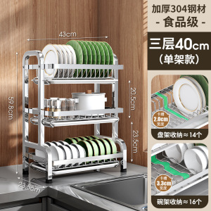 不锈钢碗盘架三层【43CM全配】