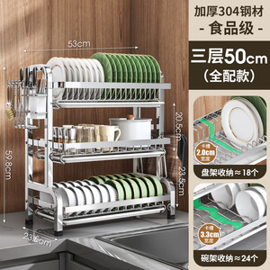 不锈钢碗盘架三层【53CM全配】