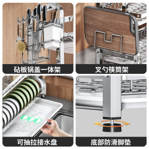 304不锈钢碗碟收纳架台面多功能一体收纳筷架家用厨房沥水置物架