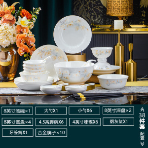 景徳鎮セラミック食器と食器セットホームウェディング新築祝いギフトライト高級ボウルとプレートボーンチャイナ食器卸売