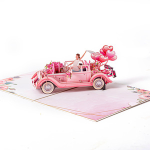 クリエイティブな新しいバレンタインデーの結婚式のスポーツカー熱気球カップル 3D 折りたたみグリーティング カード祝福カード越境卸売
