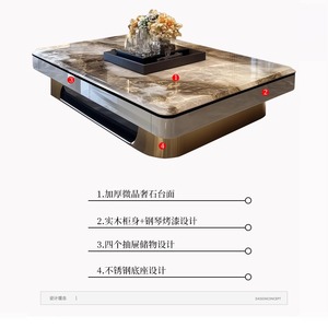 微結晶石コーヒーテーブル [無垢材多層キャビネット + ステンレス鋼ベース] 160*90*43cm