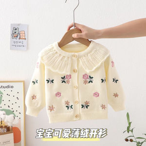 秋のかわいい子供服ベルベットカーディガンベビーニットコート女の子トップベビーコート薄い新しいベビー
