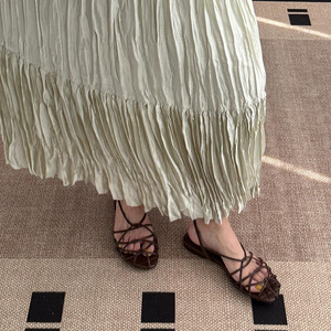 シープスキンバージョン〜フレンチウーブンラウンドトゥ中空サンダルレディースサマーアウターウェア2025新作薄いストラップオープントゥサンダル
