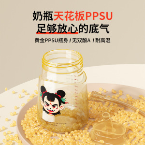 PPSU Nezha ストローカップ、飛沫防止、窒息防止、漏れ防止、1 ~ 3 歳の赤ちゃん学習ドリンクカップ、落下防止、ポータブルボトル工場バッチ