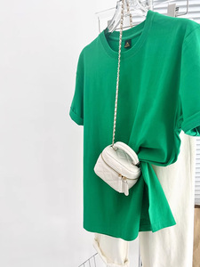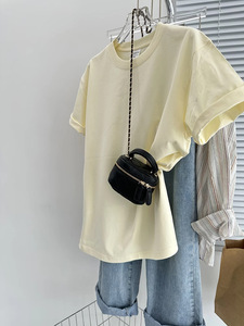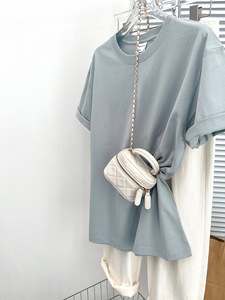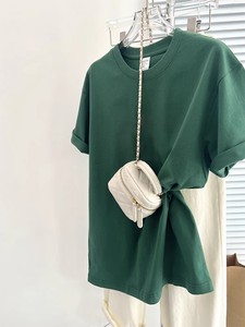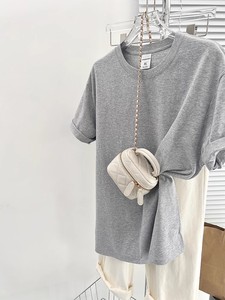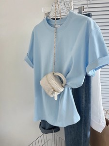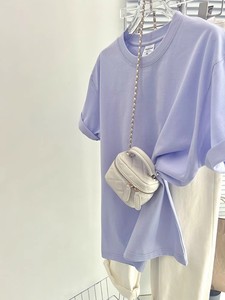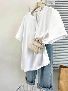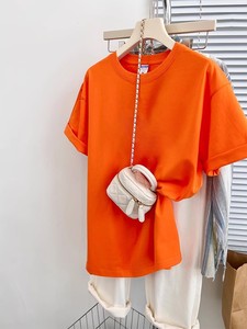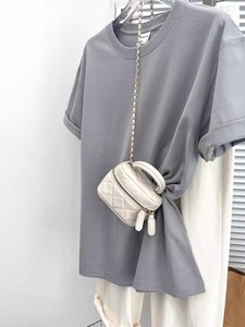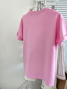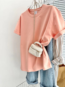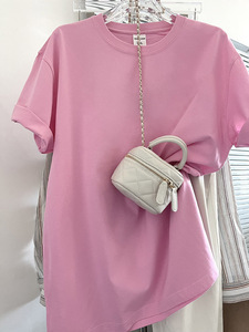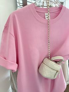 粉色短袖t恤女2025新款夏季潮牌大码宽松遮肚子上衣常规款纯棉体