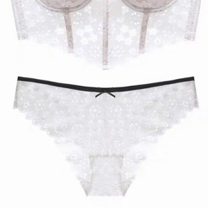 セクシーな純粋な欲望ハイエンドブラックとピンクのコントラストカラーブラジャーキャミソール胸パッド付きレースフィッシュボーン整形多用途下着女性用