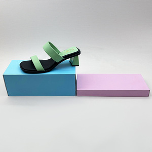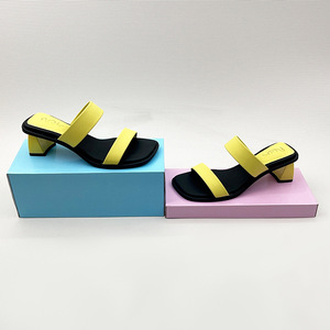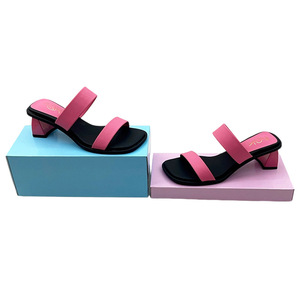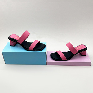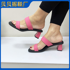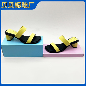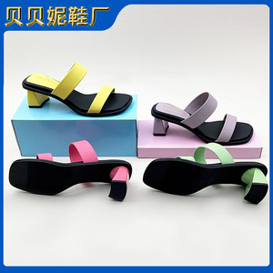 跨境拖鞋时尚鞋款高跟凉鞋蝴蝶结粗根露趾减龄凉高跟鞋欧美风女士