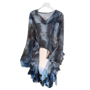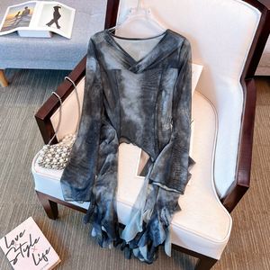 重工设计感飘带长袖网纱上衣夏日薄款超好看修身不规则防晒罩衫女